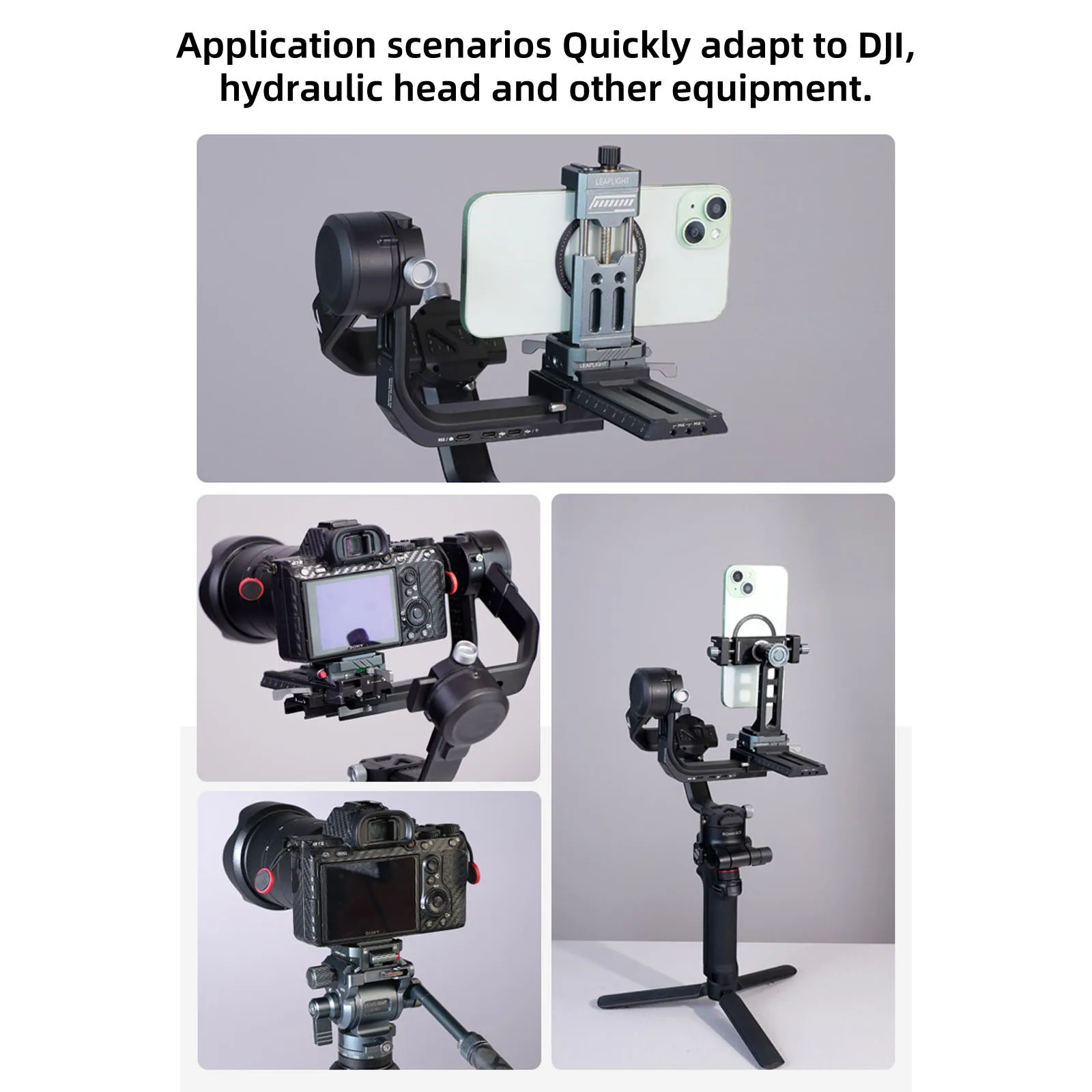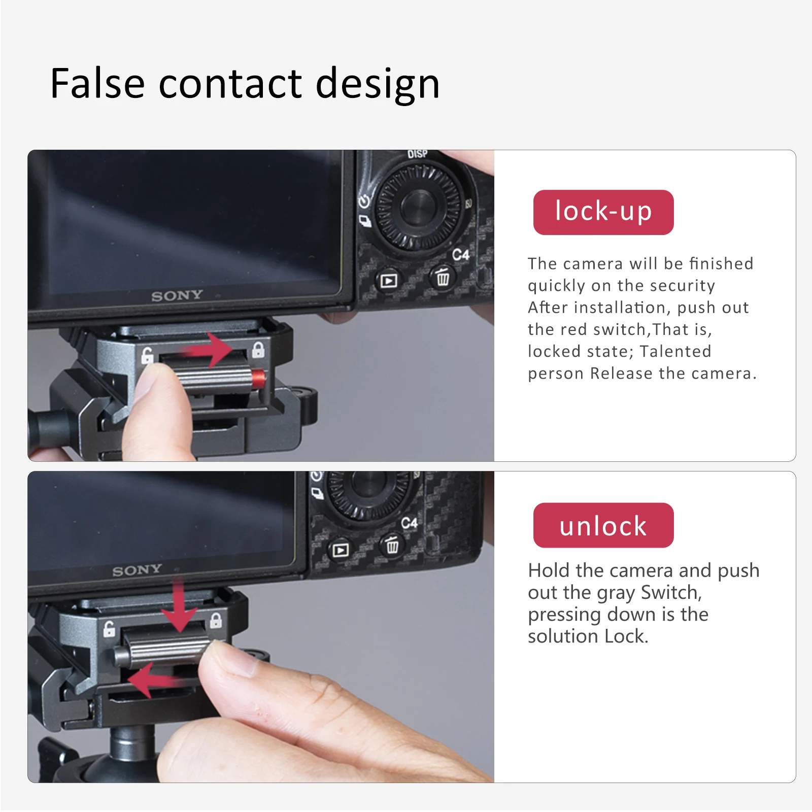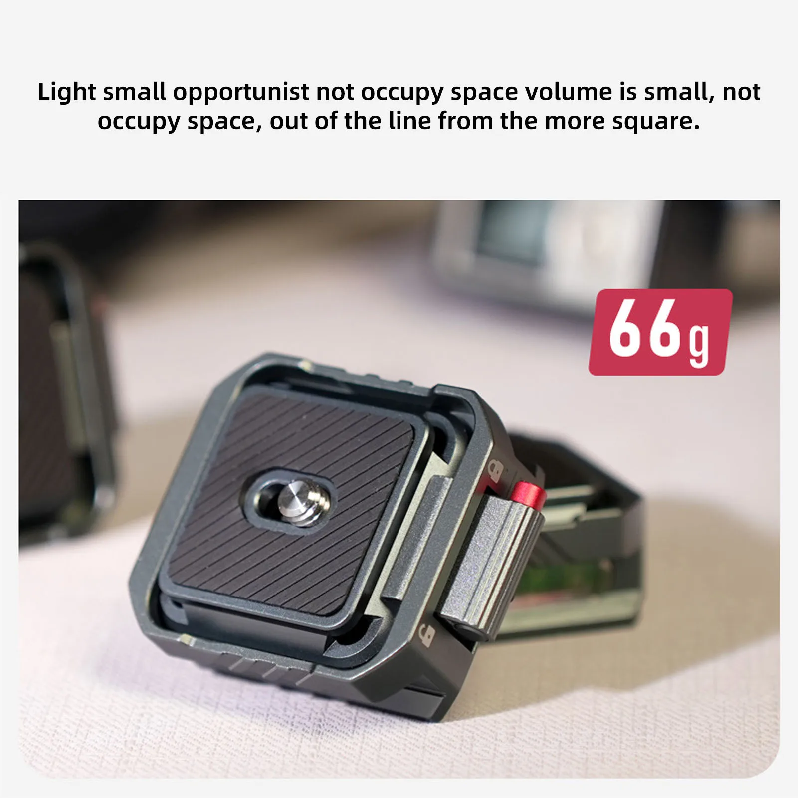 【Seamless Device Transition】The square-shaped quick release plate is compatible with Peak Design PD backpack strap camera clip V3, Arca Swiss, and other devices. Simply toggle the unlock switch for instant switching between the clamp base, tripod head, or camera clip.