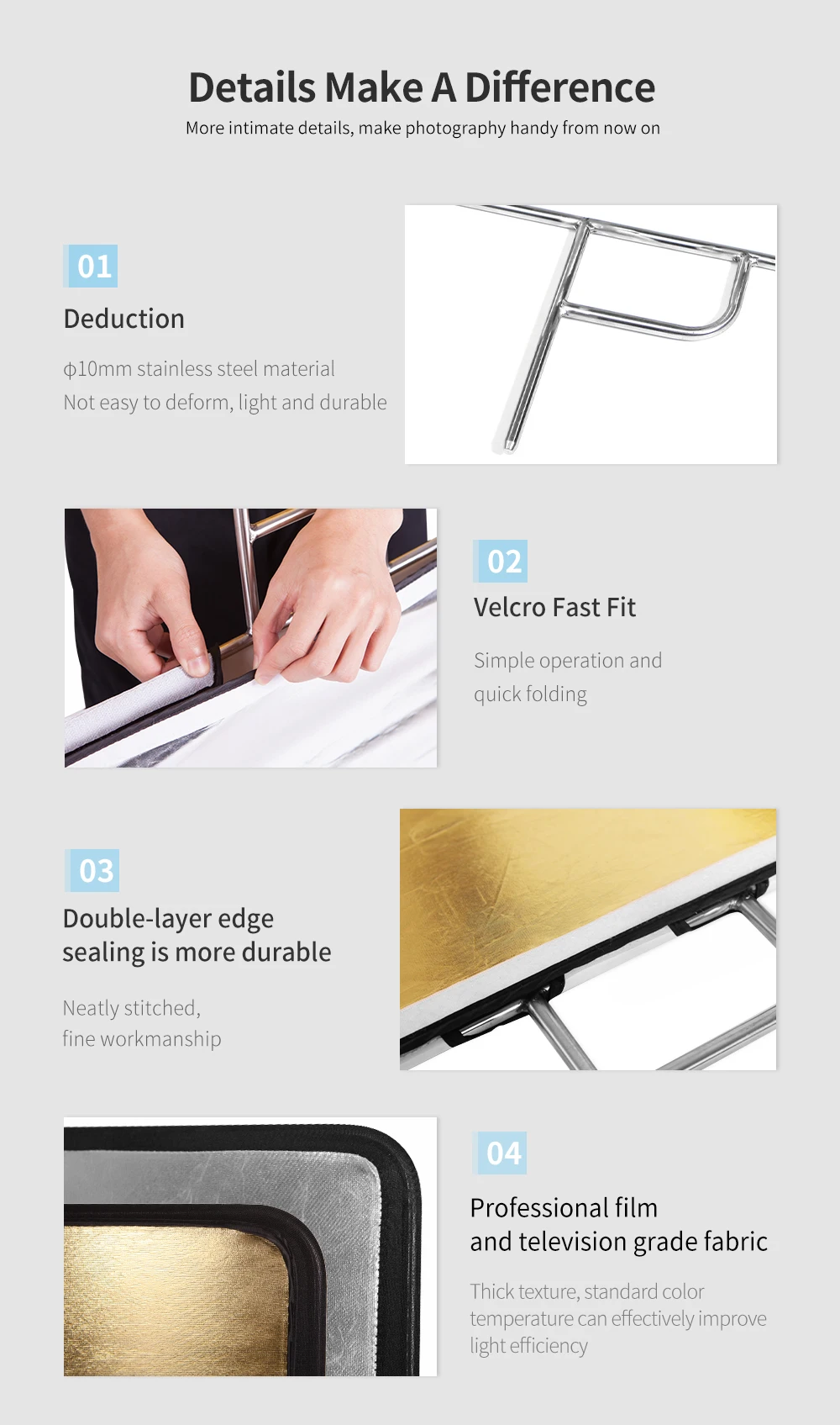 Versatile: Great for product shooting, portrait shooting, outdoor shooting, full-body portraits, etc