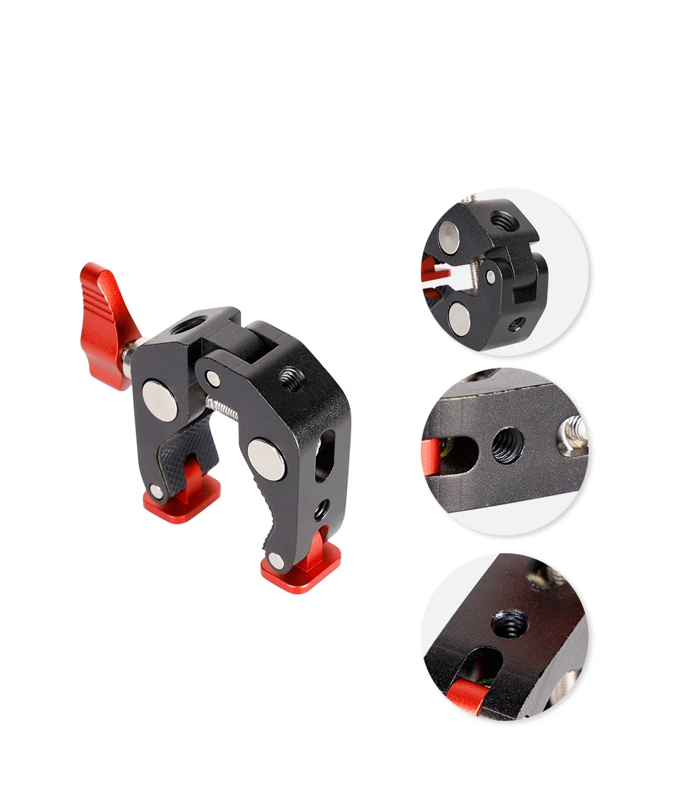 Small size super clamp, ideal for articulating magic friction arm. Max. load up to 2kg.