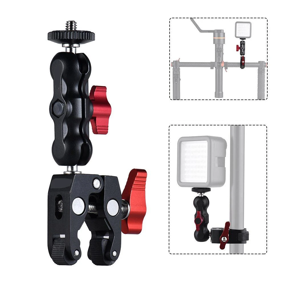 Super Clamp Camera Clamp Mount Monitor 360° Ballhead Magic Arm Double Ball Head Adapter for DSLR Camera/Gopro/LED Lights/phone